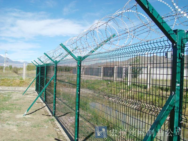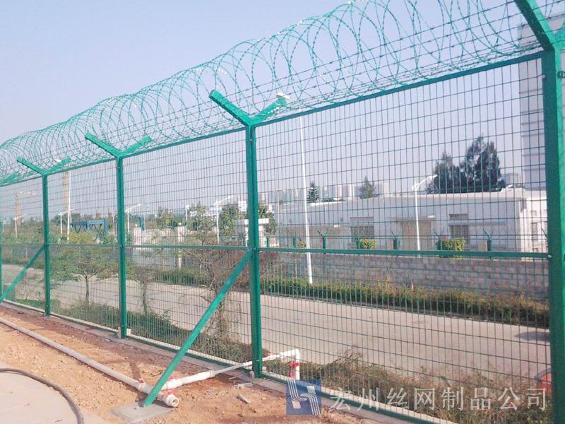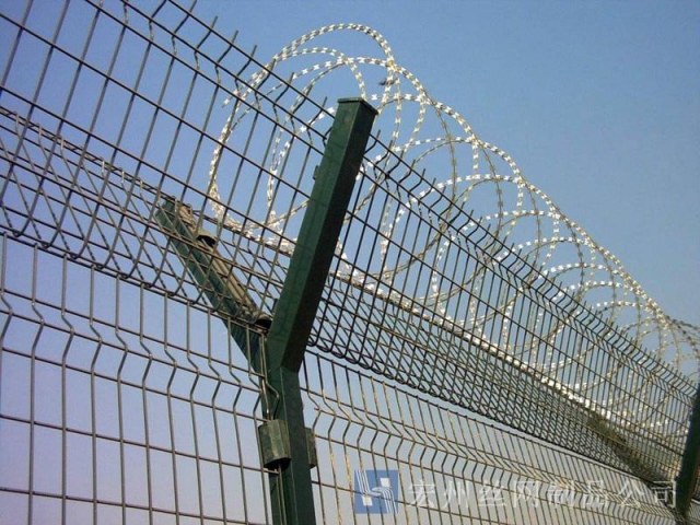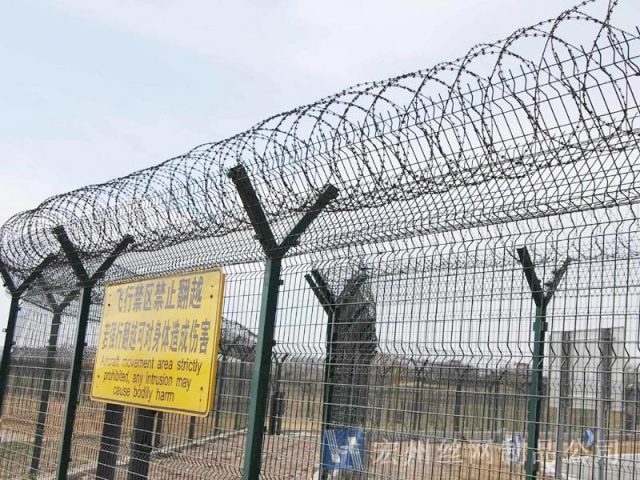 機(jī)場鐵絲圍欄網(wǎng)產(chǎn)品具有:美觀、大方、防腐性好、易保養(yǎng)、防攀爬能力強(qiáng)。近年來,被廣泛應(yīng)用在機(jī)場,軍事基地等高安全場所。注:假如在機(jī)場護(hù)欄網(wǎng)頂部加裝刀片刺絲、刀片刺繩后又很好的增強(qiáng)了安全防護(hù)機(jī)能。