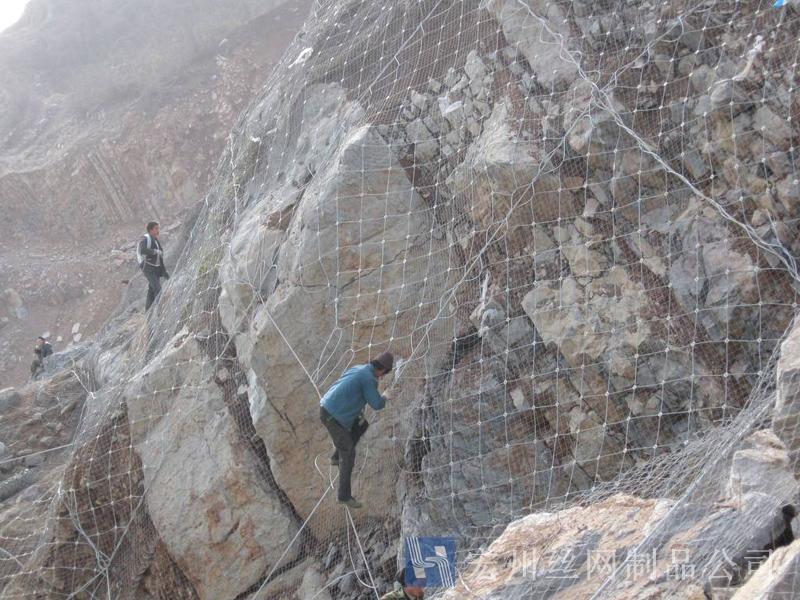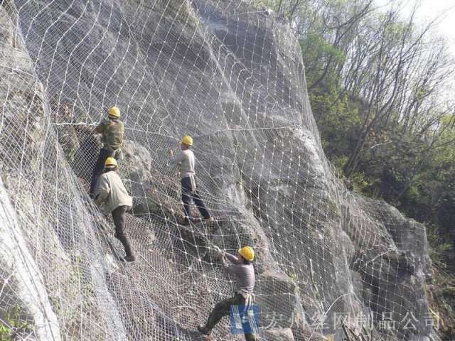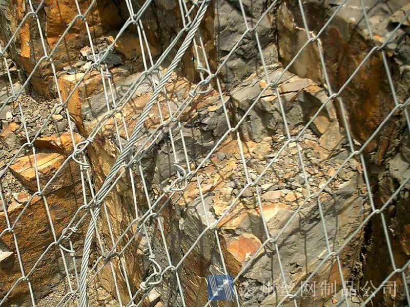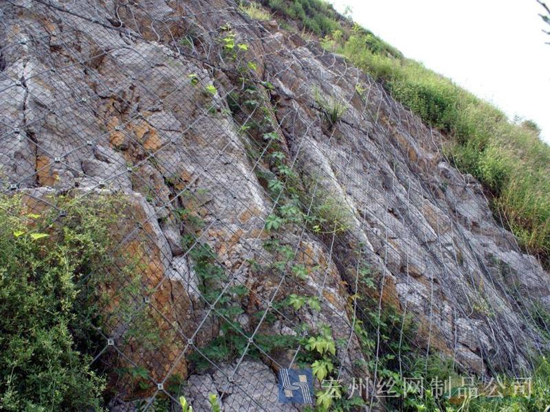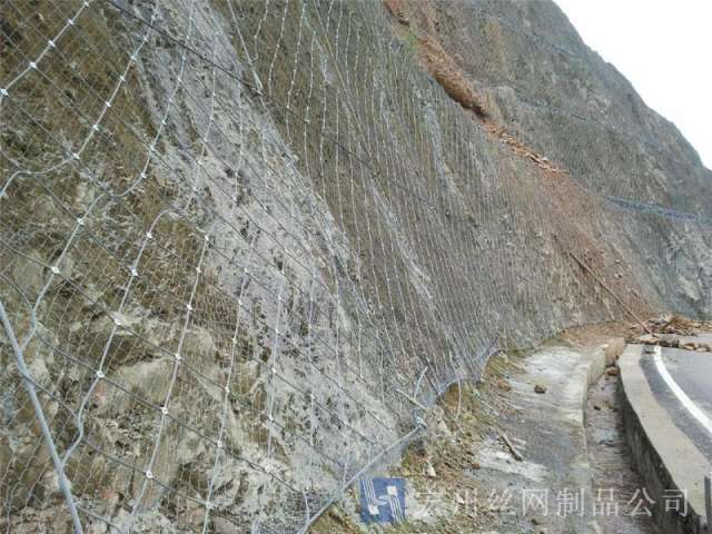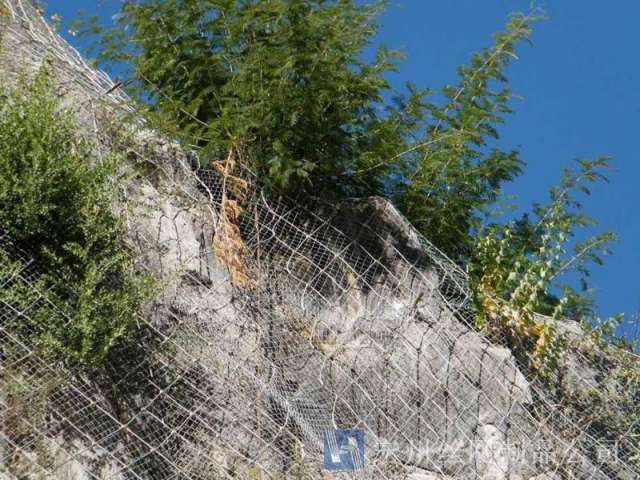 主動防護系統(tǒng)是以鋼絲繩網(wǎng)為主的各類柔性網(wǎng)覆蓋包裹在所需防護斜坡或巖石上,以限制坡面巖石土體的風(fēng)化剝落或破壞以及為巖崩塌(加固作用),或?qū)⒙涫刂朴谝欢ǚ秶鷥?nèi)運動(圍護作用)。是柔性防護網(wǎng)的一種。